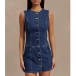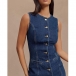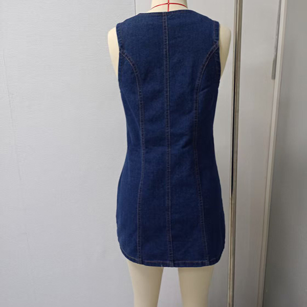 Fashion Crew Neck Sleeveless Front Button Old-washed Denim Dress