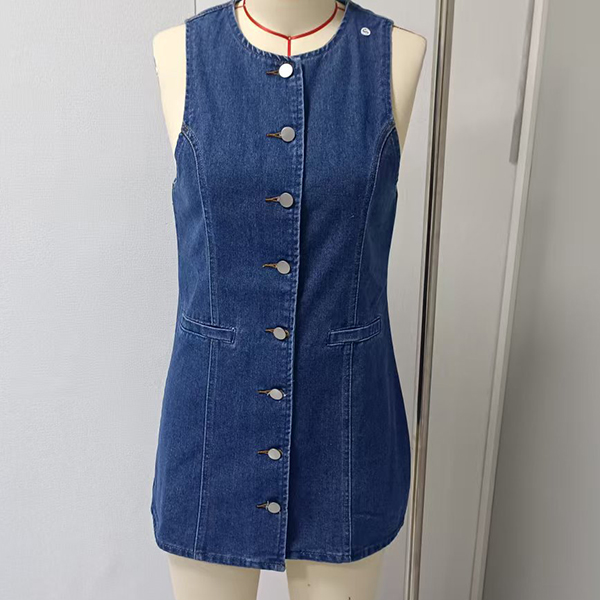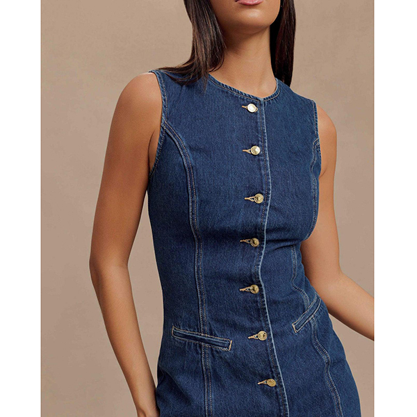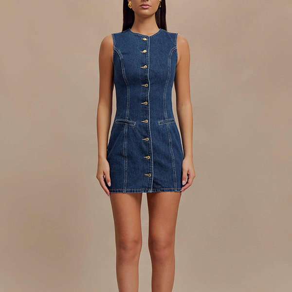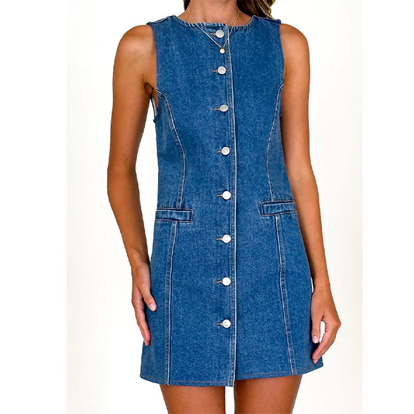 This Denim Dress is a stylish and versatile dress that combines classic denim with modern details. The crew neck and sleeveless design provide a simple and elegant silhouette, while the front button closure adds a touch of retro charm. This dress is perfect for casual outings, everyday wear. Wanna have one?