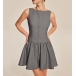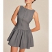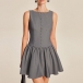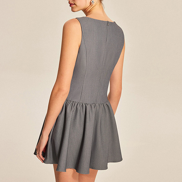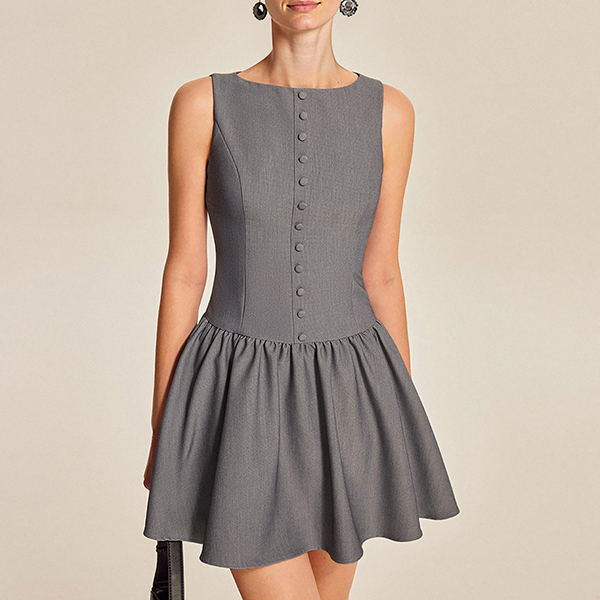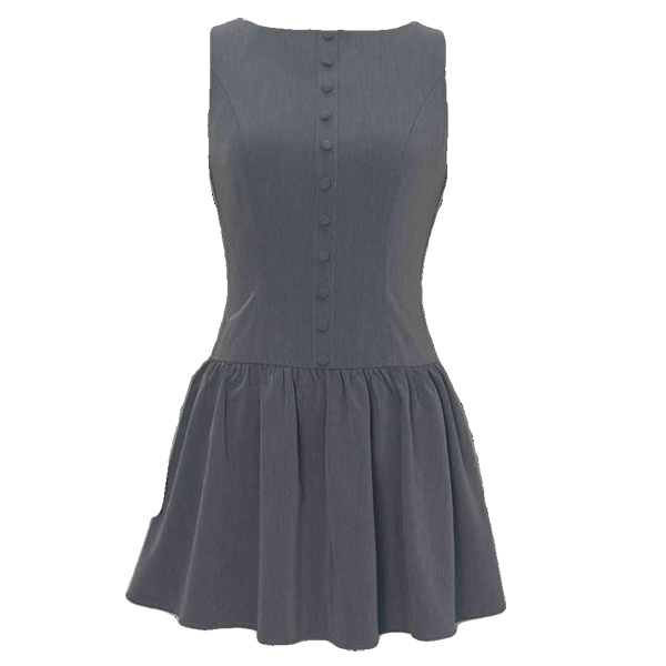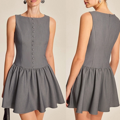 Fashion Crew Neck Sleeveless Front Button Ruffle Hemline Mini Dress