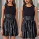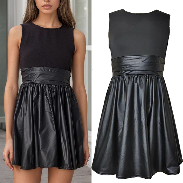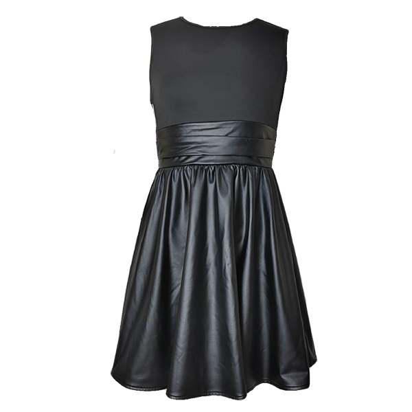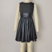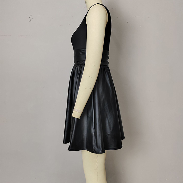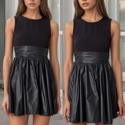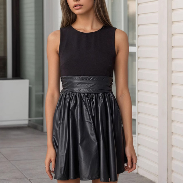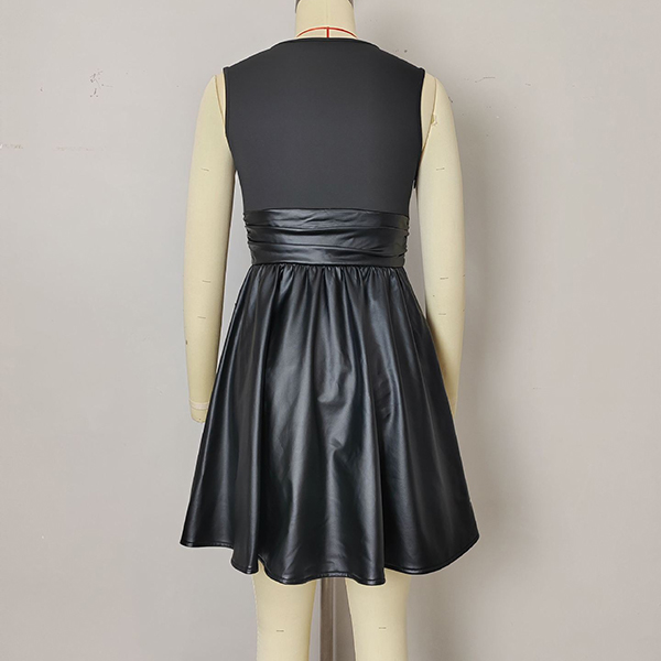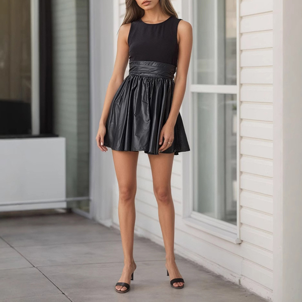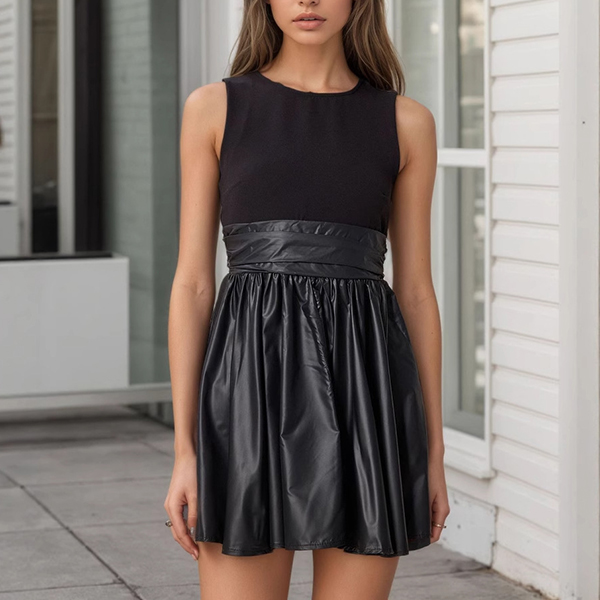 Fashion Crew Neck Sleeveless High-rise Artificial Leather Ruffle Mini Dress