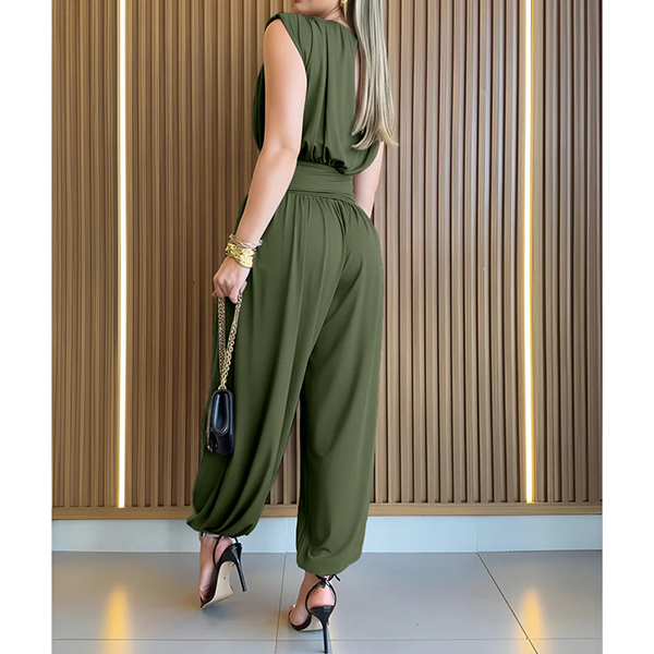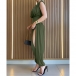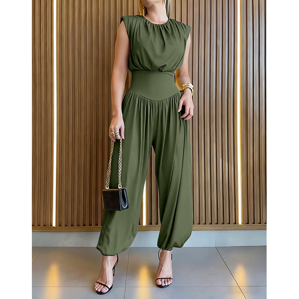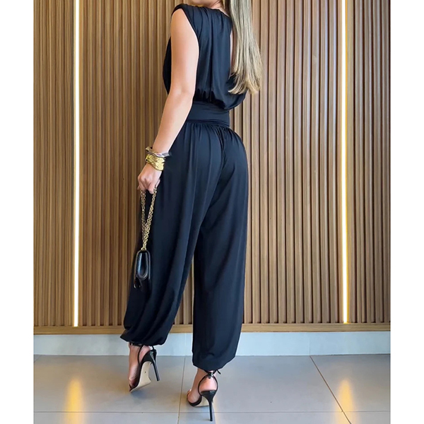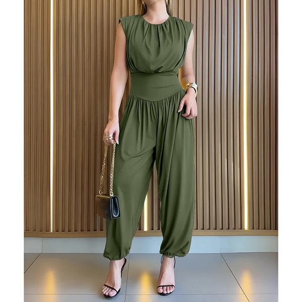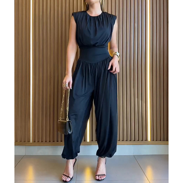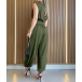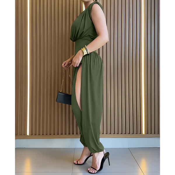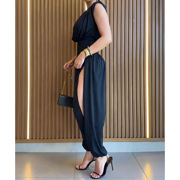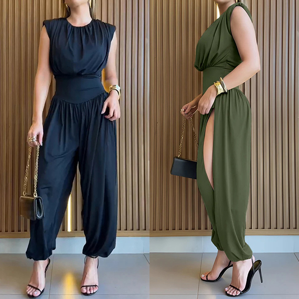 Fashion Crew-neck Sleeveless High-rise Side Slit Jumpsuit