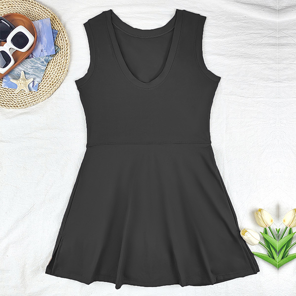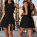 This romper features a crew neck, sleeveless design, irregular hemline, self-tie waist, backless and a sporty yet chic look that is perfect for your sports activities.