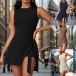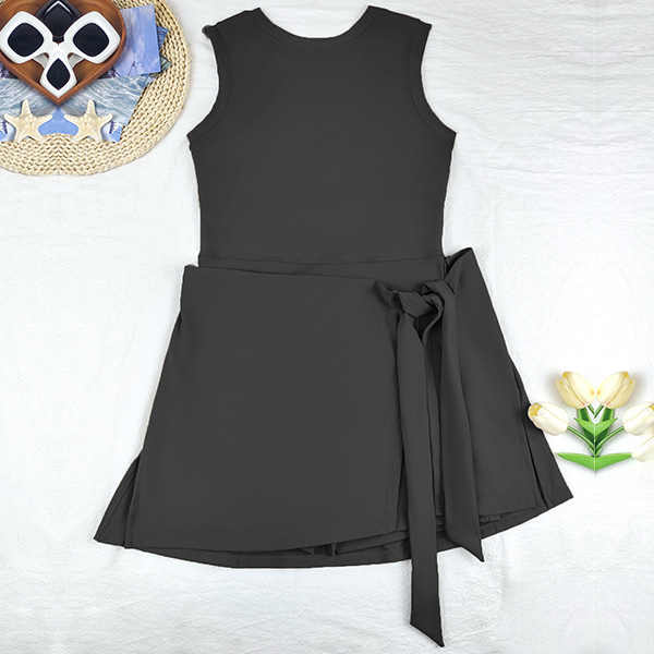Fashion Crew Neck Sleeveless Irregular Hemline Self-tie Romper for Sports
