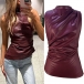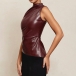 Stay on-trend with this fashionable slim-fit vest. The sleeveless design is perfect for layering over tops or dresses, adding a chic and modern touch to your outfit. The crew neck offers a classic and versatile neckline, while the irregular hemline adds a unique and stylish element to the vest. This vest is ideal for adding a fashionable layer to your ensemble and can be paired with jeans, pants, or skirts for a variety of stylish looks.