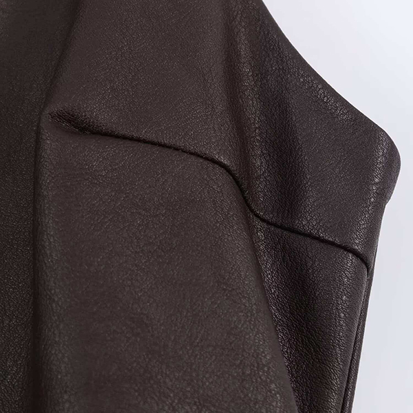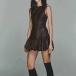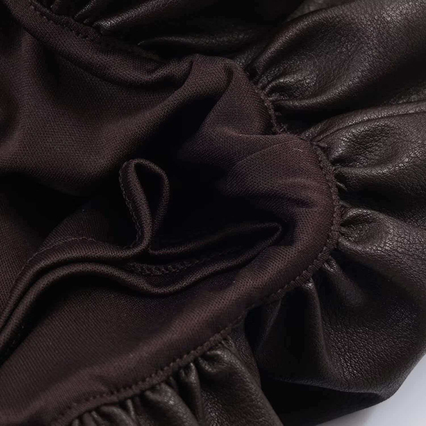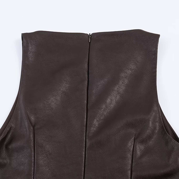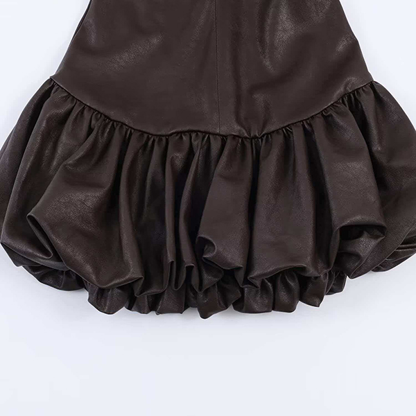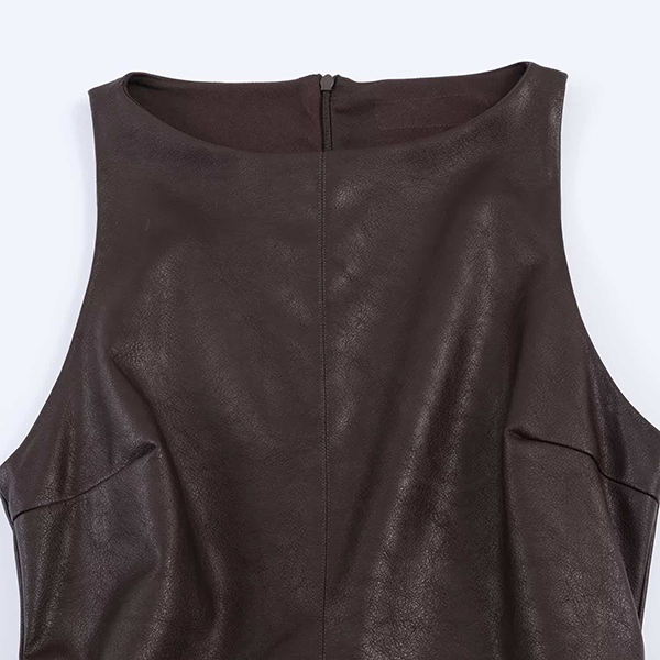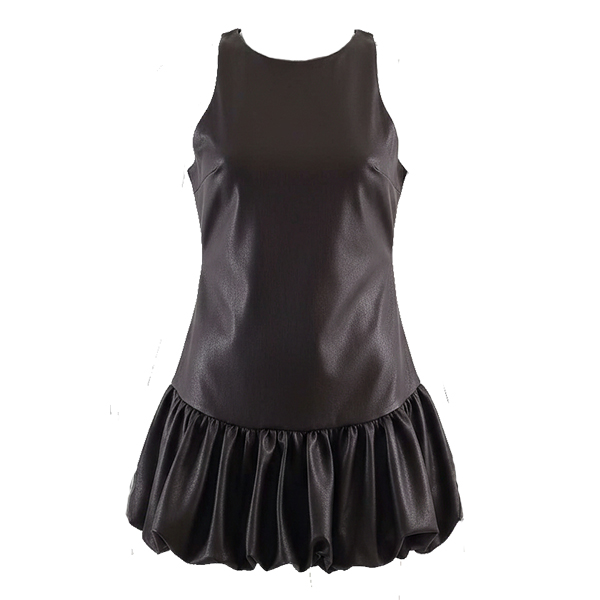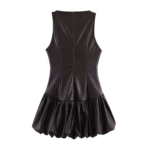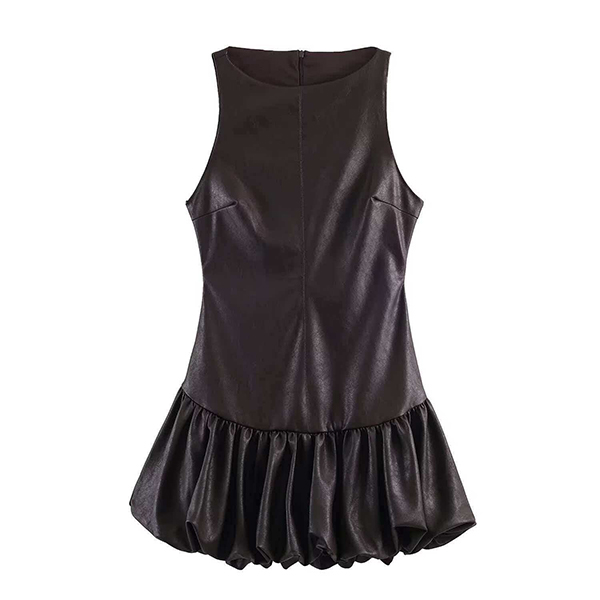 Fashion Crew Neck Sleeveless Ruffle Hemline Artificial Leather PU Dress