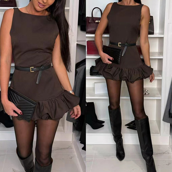 Fashion Crew Neck Sleeveless Ruffle Hemline Backless Romper