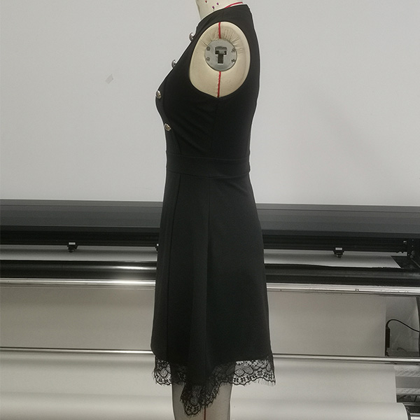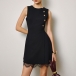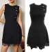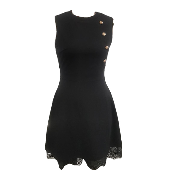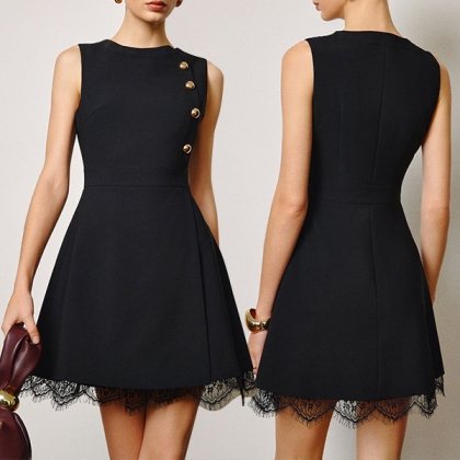 Fashion Crew Neck Sleeveless Side Button Lace Spliced Hemline Mini Dress