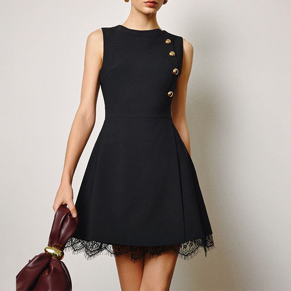 This is a chic and feminine dress that exudes effortless charm and sophistication. It features crew neck, sleeveless and lace spliced hemline. The side button detailing adds a unique and eye-catching element to the dress, creating a modern and trendy touch that sets it apart from the rest. Wanna have a try?