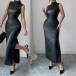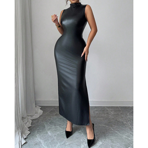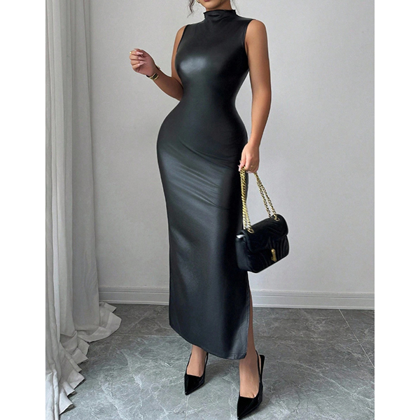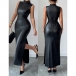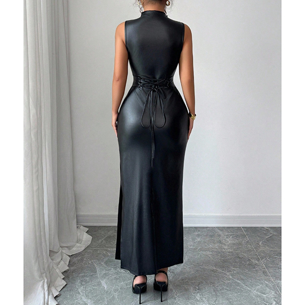 Fashion Crew Neck Sleeveless Side Slit Back Lace-up Bodycon Dress
