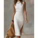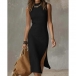 Achieve sleek sophistication in this minimalist bodycon dress that proves less is more. The classic crew neckline and sleeveless design create a clean, modern silhouette that flatters every figure. Perfect for daily wear.