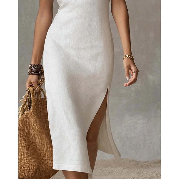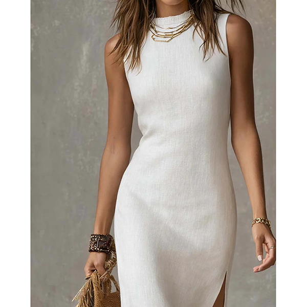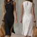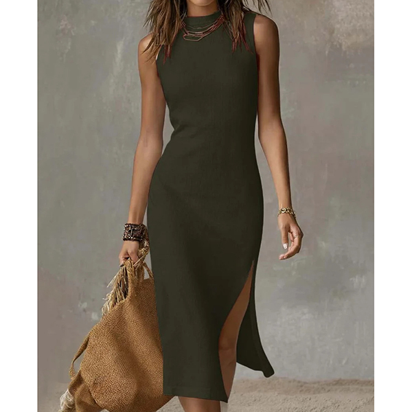 Fashion Crew Neck Sleeveless Side Slit Bodycon Dress