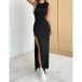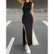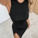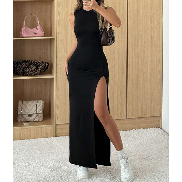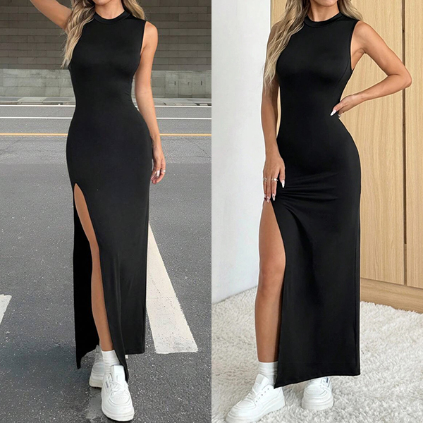 Fashion Crew Neck Sleeveless Side Slit Bodycon Dress
