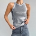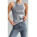 Fashion Crew Neck Sleeveless Silver Tank Top