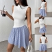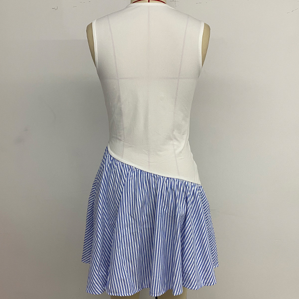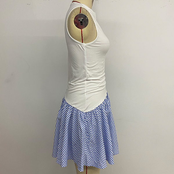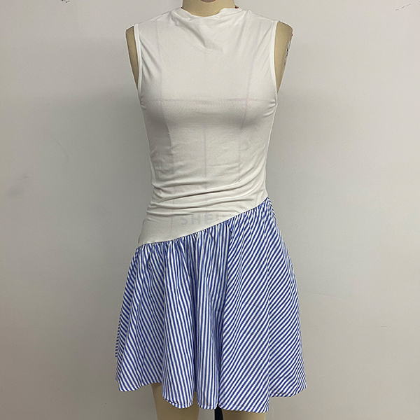 Fashion Crew Neck Sleeveless Vertical Stripe Printed Spliced Mini Dress