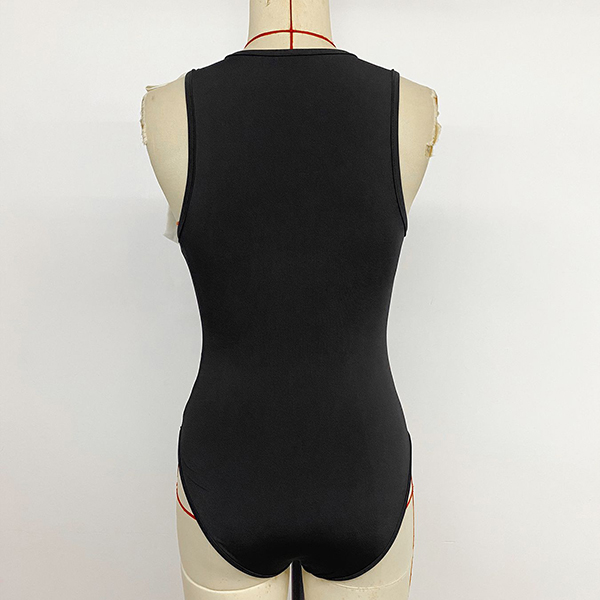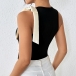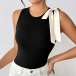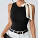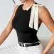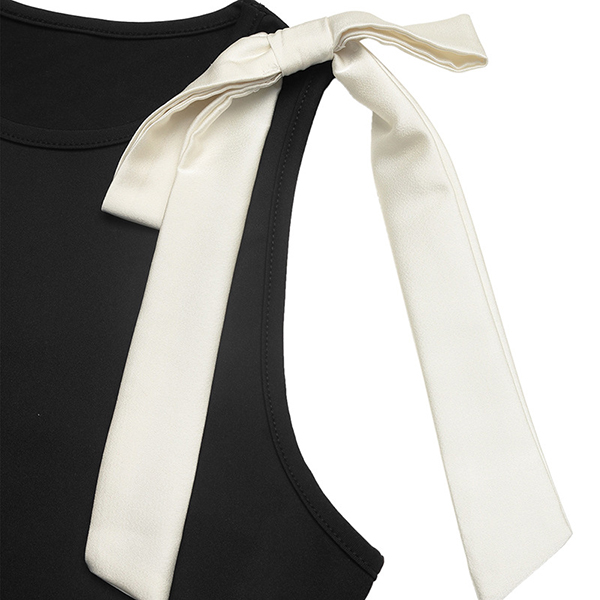 Fashion Crew Neck Sleeveless White Bowknot Bodysuit