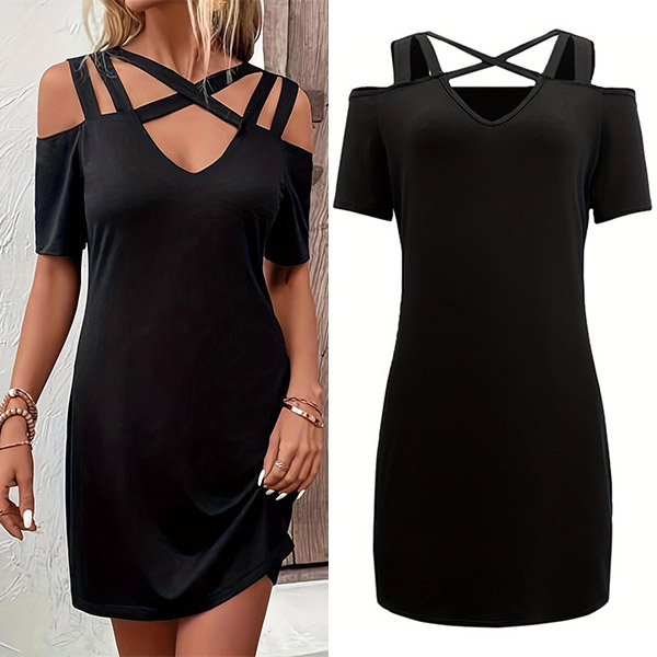 The defining feature of this dress is the striking criss-cross cutout detail across the shoulder. Wanna have a try?