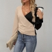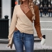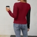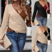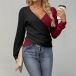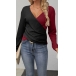 Fashion Cross Contrast Color V-neck Long Sleeve Shirt