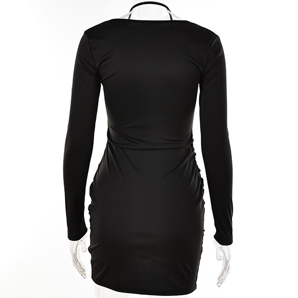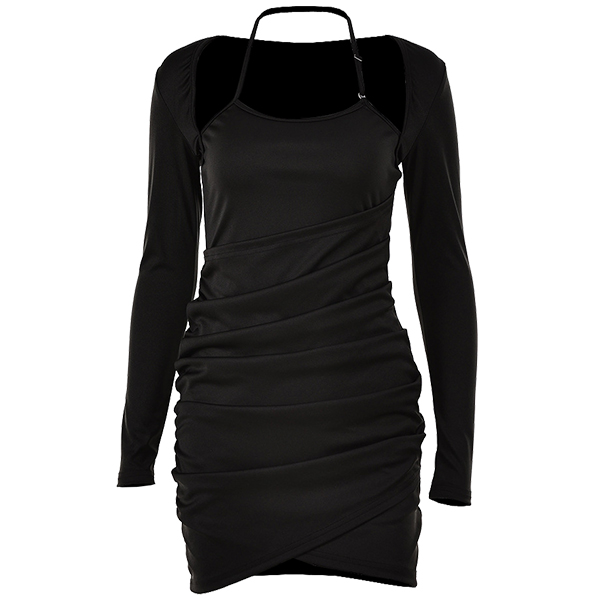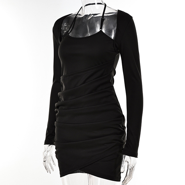 Fashion Cut Out Long Sleeve Irregular Hemline Fake-two-piece Bodycon Dress