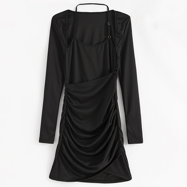 This is a trendy and stylish dress that combines cut-out detailing, long sleeves, and an irregular hemline for a unique and fashionable look. This dress features a fake-two-piece design, creating the illusion of a layered look without the added bulk. It adds a touch of complexity and uniqueness to the dress, making it a standout piece. Wanna have a try?
