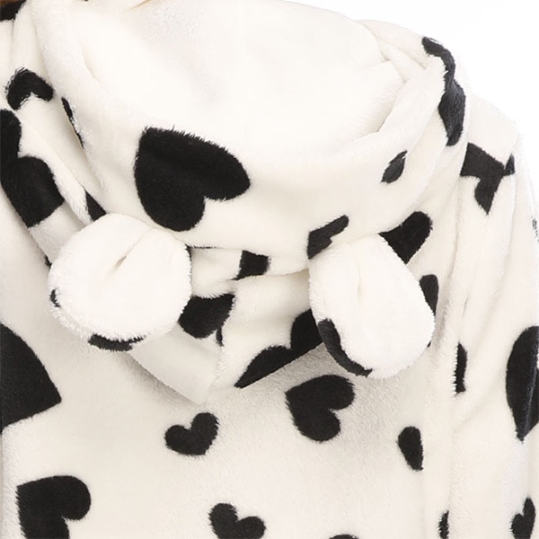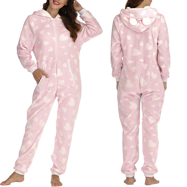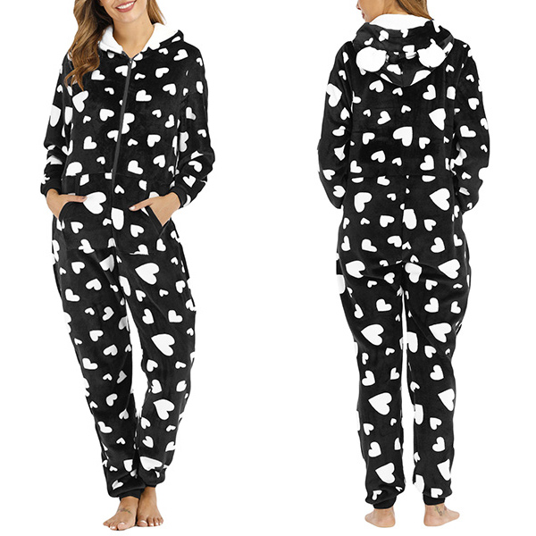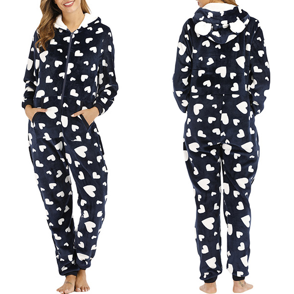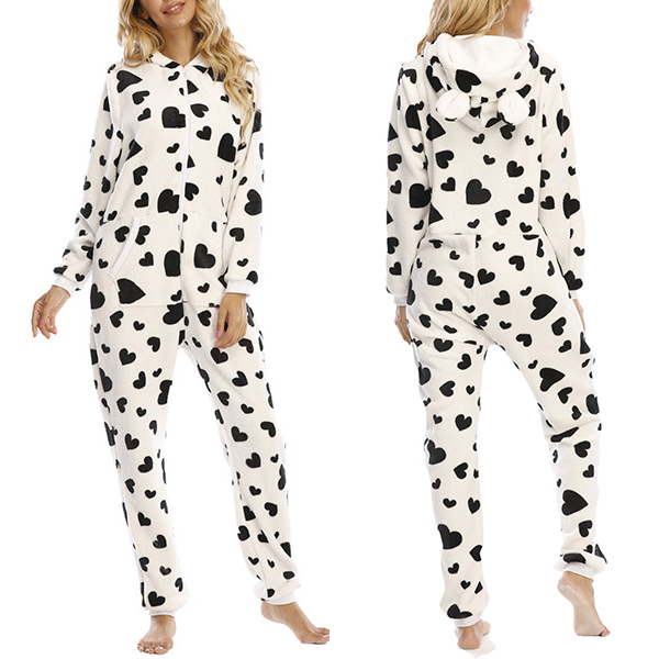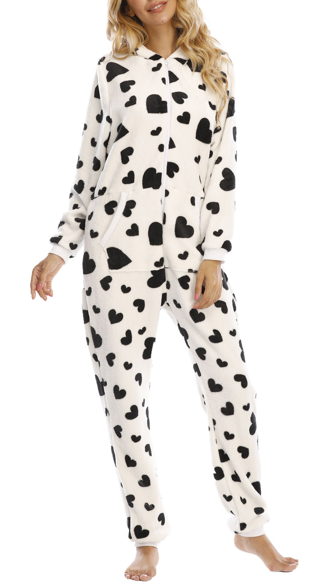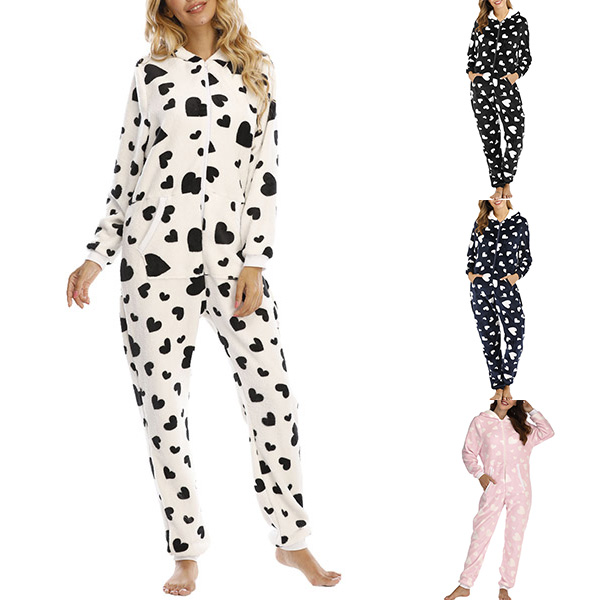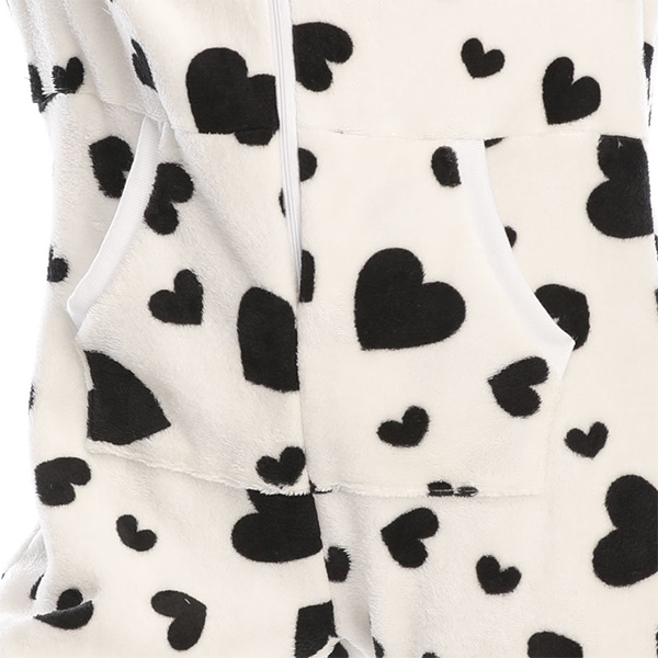 Fashion Cute Heart Pattern Hooded Plush Pajamas Jumpsuit