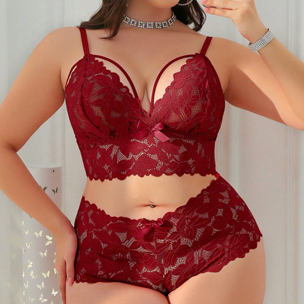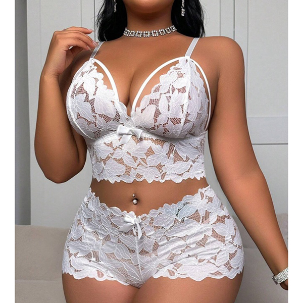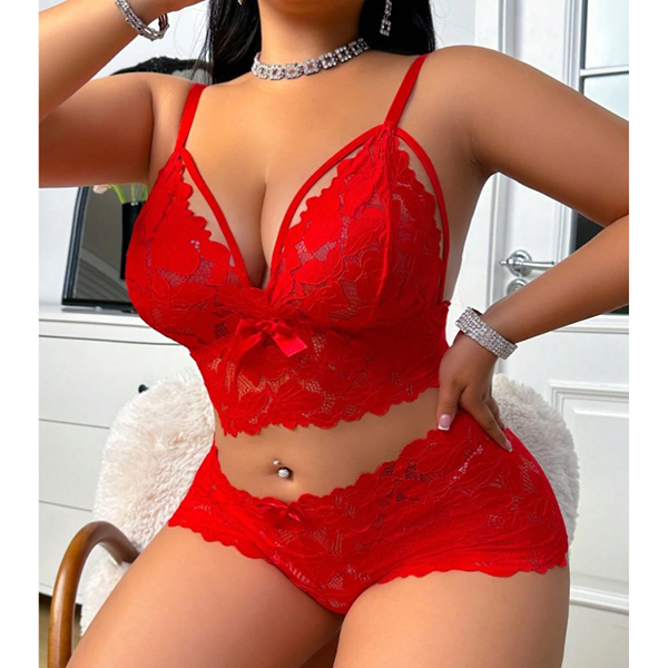Fashion Cutout Bow-knot Lace Two-piece Lingerie Set