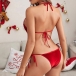 Fashion Cutout Plush Spliced Red Halter Bodysuit