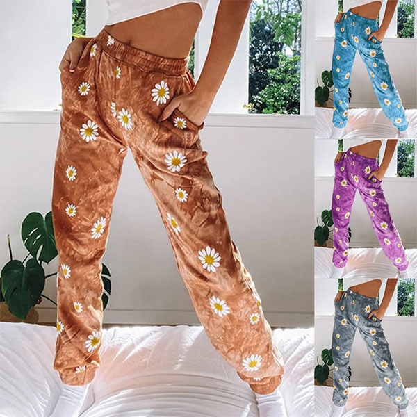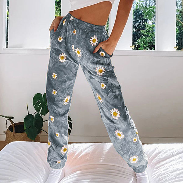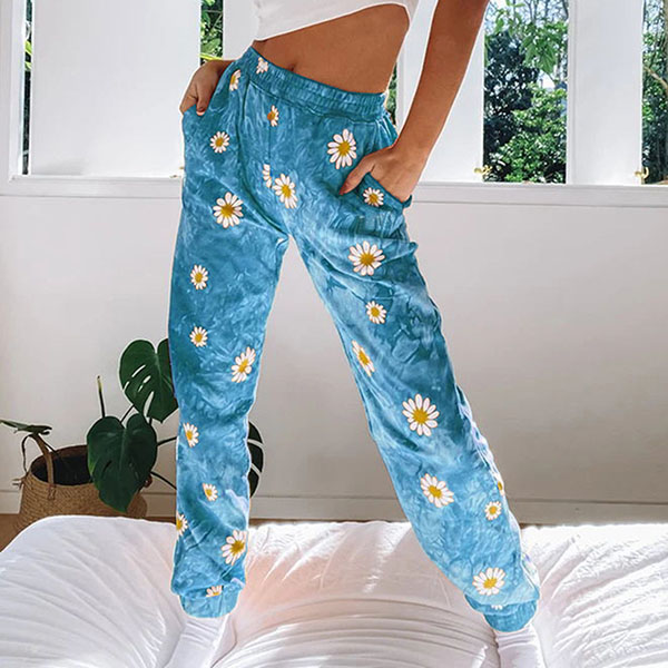 Crafted from soft and breathable fabric,with an elastic waist,this pants can give you a comfortable day. And the daisy printed details make this piece look more stylish. It is perfect fit for your casual days and sports time.