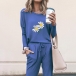 As for a simple,casual and relaxed weekend look,you can just have a try this two-piece set. Including a long sleeve round neck sweatshirt and a pants,the daisy printed pattern design will add some extra charm. Its soft and breathable fabric also can give you a comfortable day. Add them to your casual wardrobe ensemble!