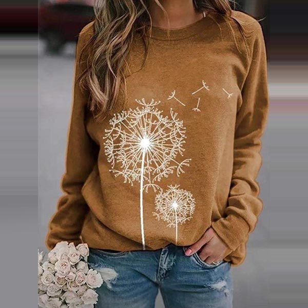 Thanks to the soft,breathable fabric and loose silhouette,you can have a comfortable day in this t-shirt. Outfitted with long sleeve and round neck design,the dandelion printed pattern design will add some charm. For a casual,relaxed and stylish autumn look,this sweatshirt is a good choice.