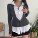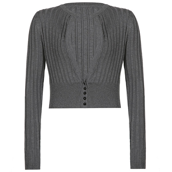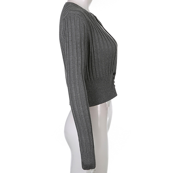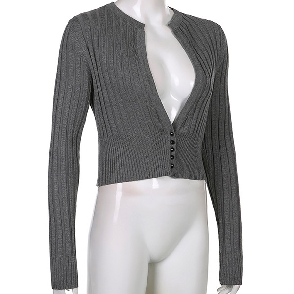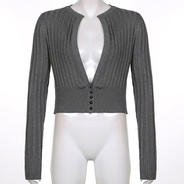 Fashion Deep V-neck Long Sleeve Solid Color Short-style Knit Cardigan