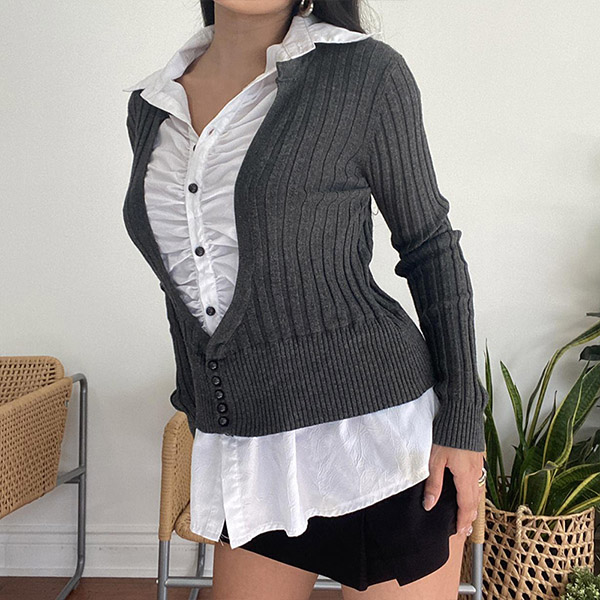 Greet the breezy autumn days with this chic and sassy knit cardigan. Short-style and v-neck design make it full of sassy and flirty vibes. Crafted in a solid color,with long sleeve and a clean,fit silhouette,this knit cardigan is perfect fit for matching with your sling tops or crop tops.