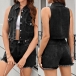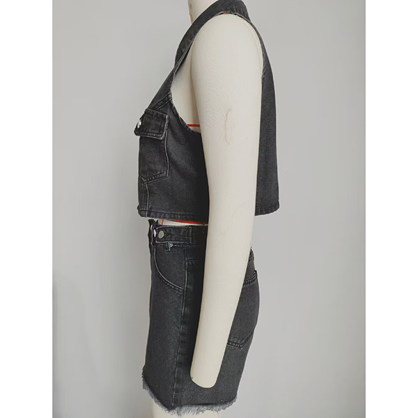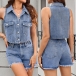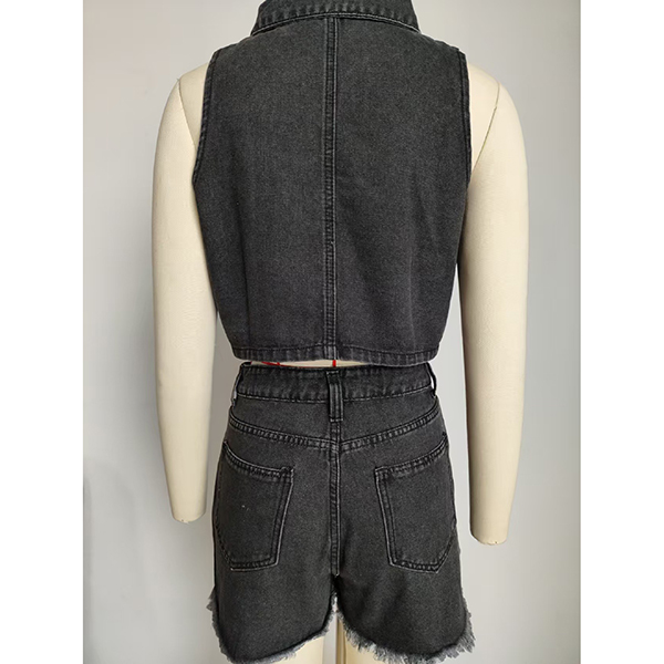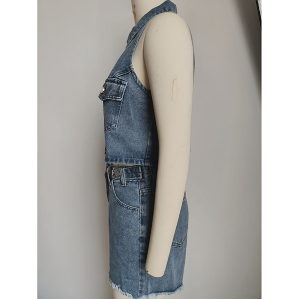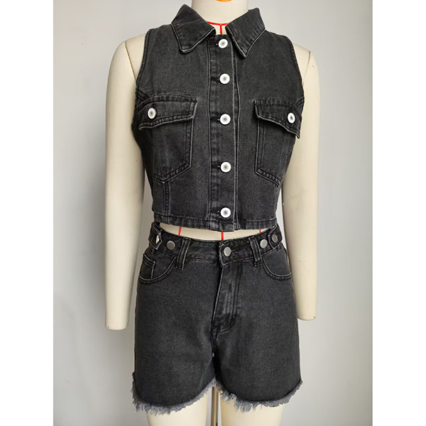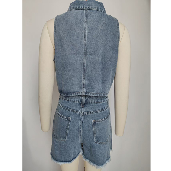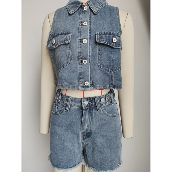 Elevate your look with this fashion denim two-piece set, featuring a stylish crop vest and matching shorts! Made from durable denim, this set combines comfort with a trendy aesthetic. Complete the look with your favorite sneakers or sandals for an effortlessly fashionable ensemble.