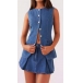 Fashion Denim Two-piece Set Consist of Sleeveless Vest and Pleated Skirt