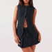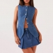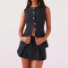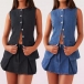 This fashion-forward denim two-piece set consists of a sleeveless vest and pleated skirt, offering a stylish and versatile option for your casual and trendy wardrobe. Wanna have a try?
