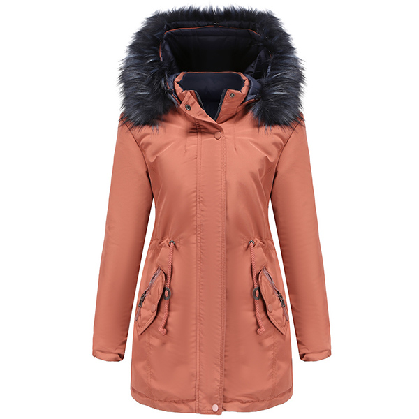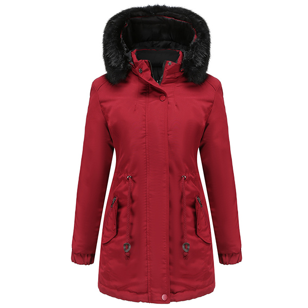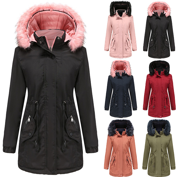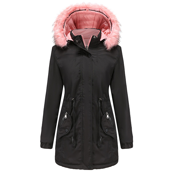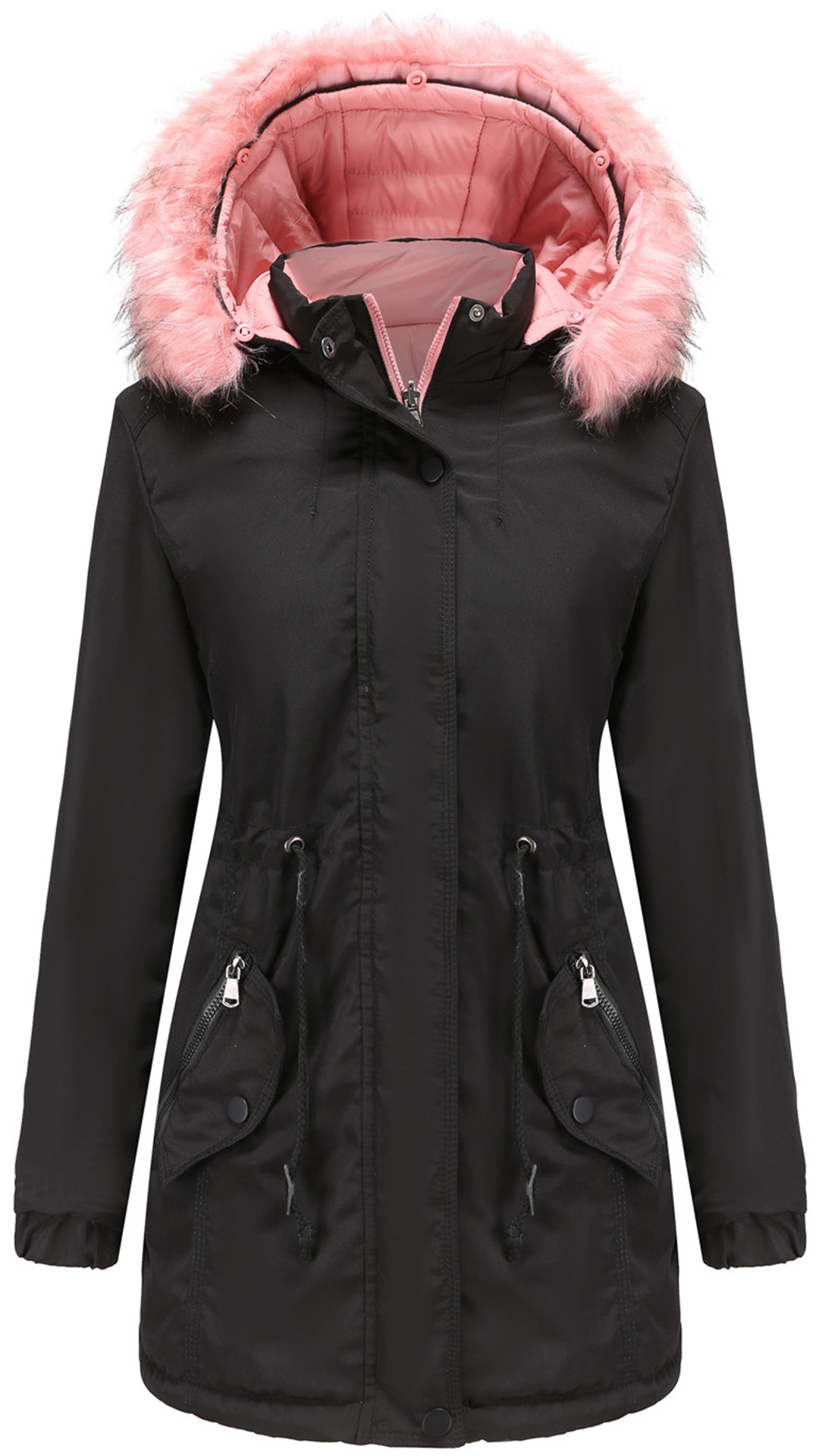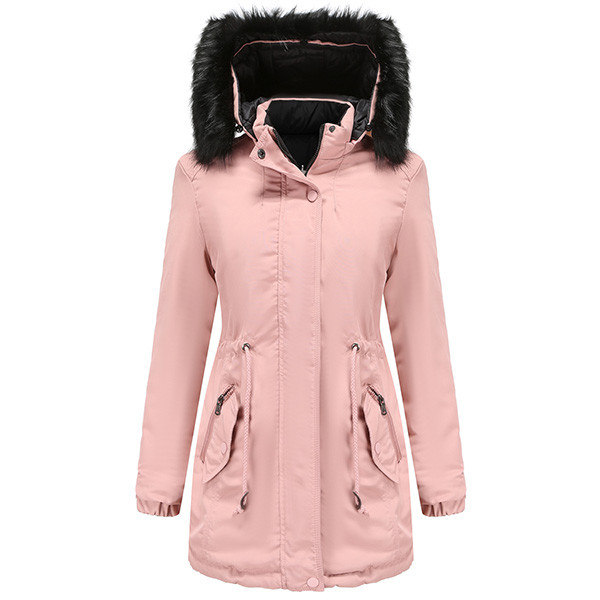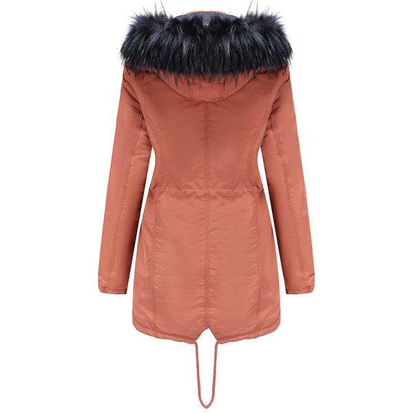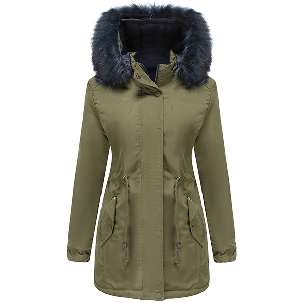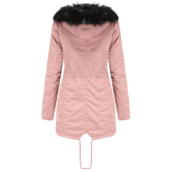 When the cold season hits,you can just have a try this warm coat. The detachable faux fur collar design will enrich the design style,while the drawstring design at the waist part can better showcase your waistline and figure. You can just slip into this coat to enjoy your winter days.