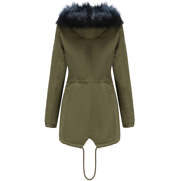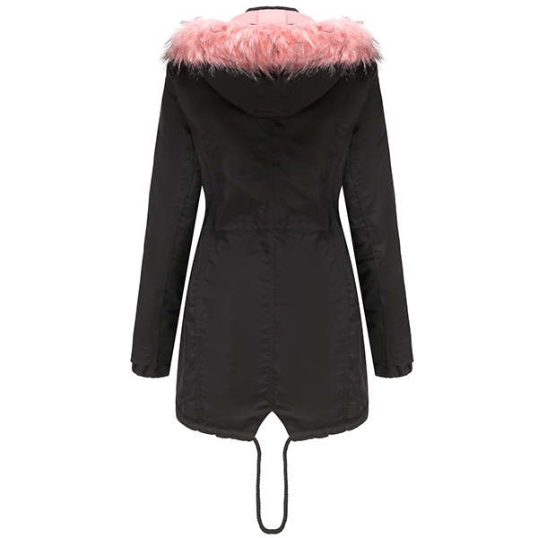 Fashion Detachable Faux Fur Collar Hooded Drawstring Waist Warm Coat
