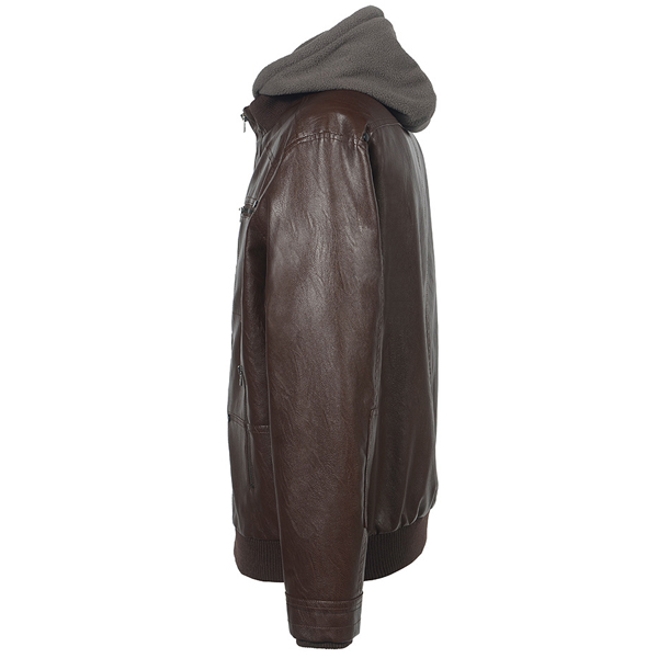 Fashion Detachable Hoodied Artificial Leather PU Jacket for Men