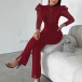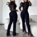 This stylish and chic jumpsuit features a unique diamond pattern gauze spliced design that exudes elegance and sophistication. The puff long sleeves add a touch of drama and flair, while the straight-cut silhouette creates a sleek and modern look. Perfect for a special occasion or a night out, this jumpsuit is sure to turn heads and make you stand out from the crowd.