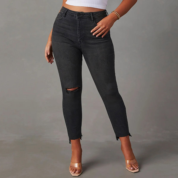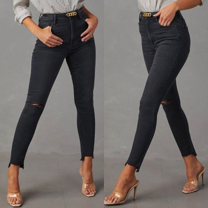 Fashion Distressed Frayed Hem High-rise Skinny Jeans