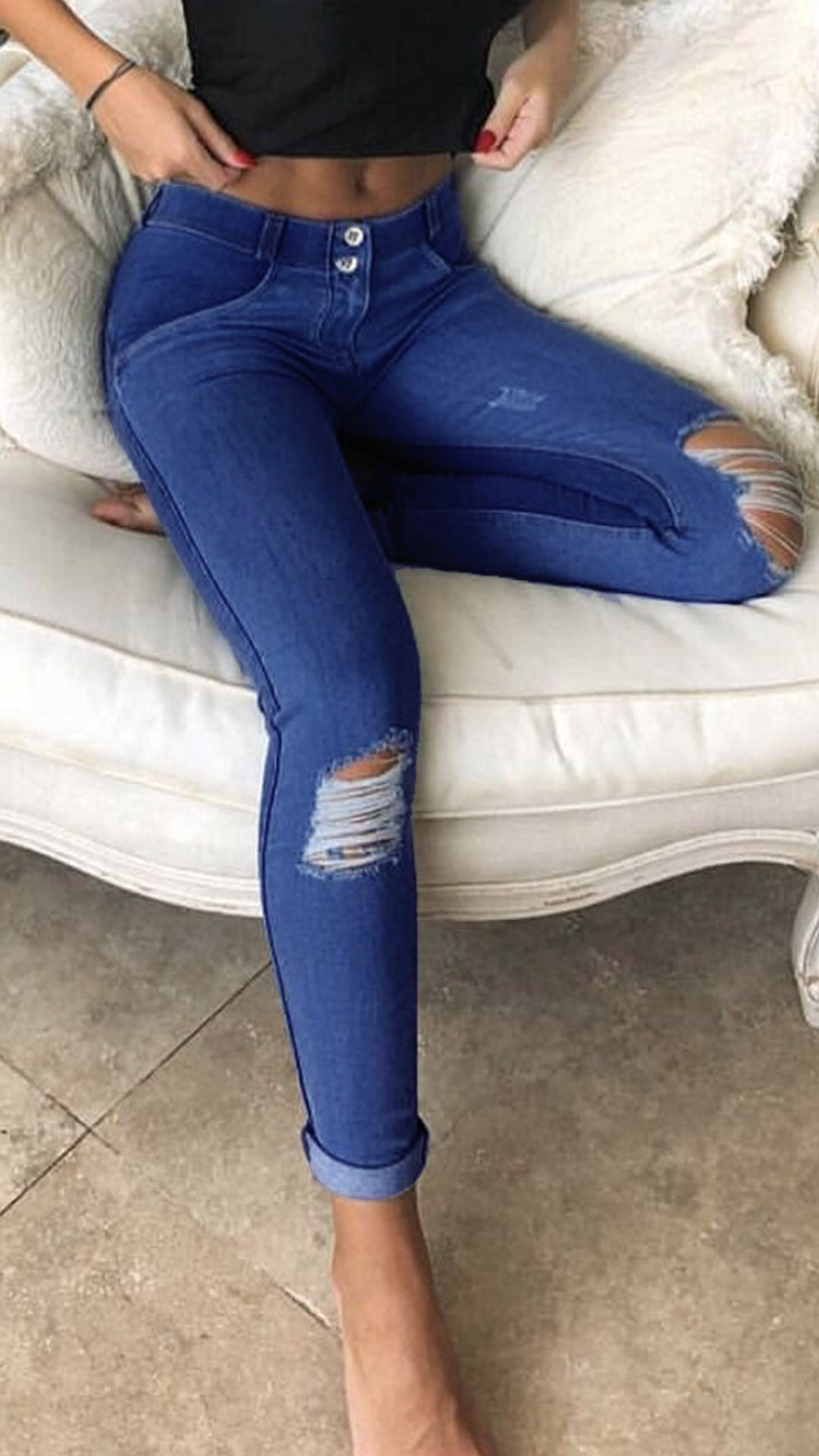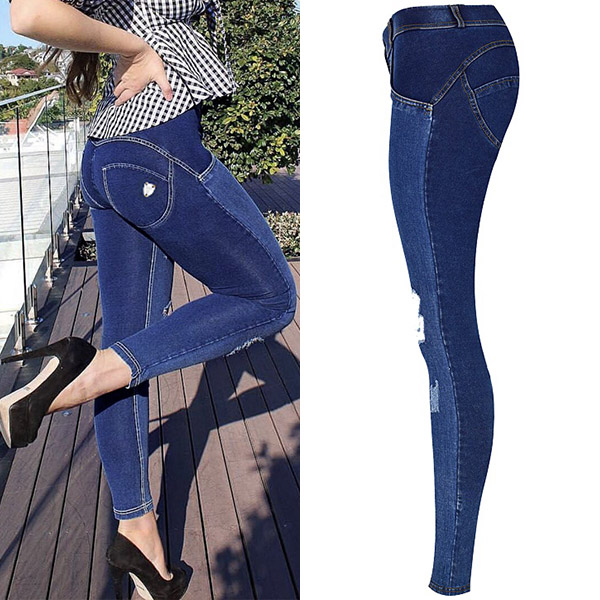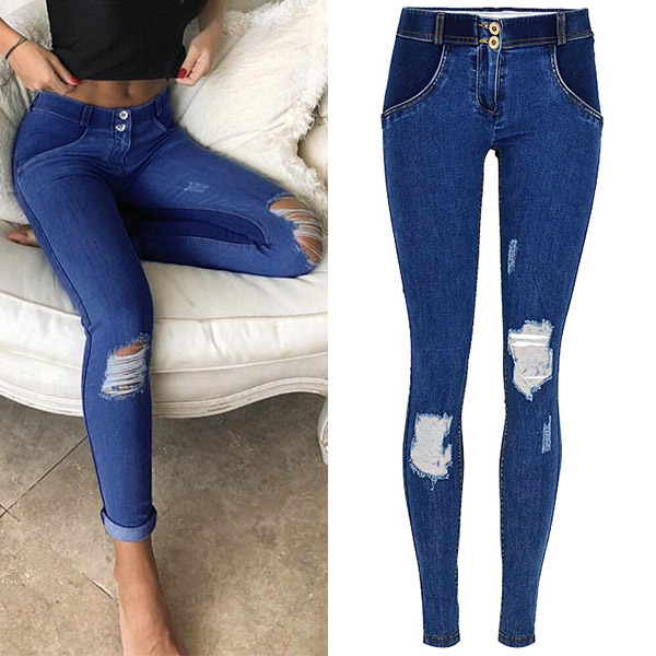 Fashion Distressed Low Rise Butt-lifting Skinny Jeans for Yoga/Workout