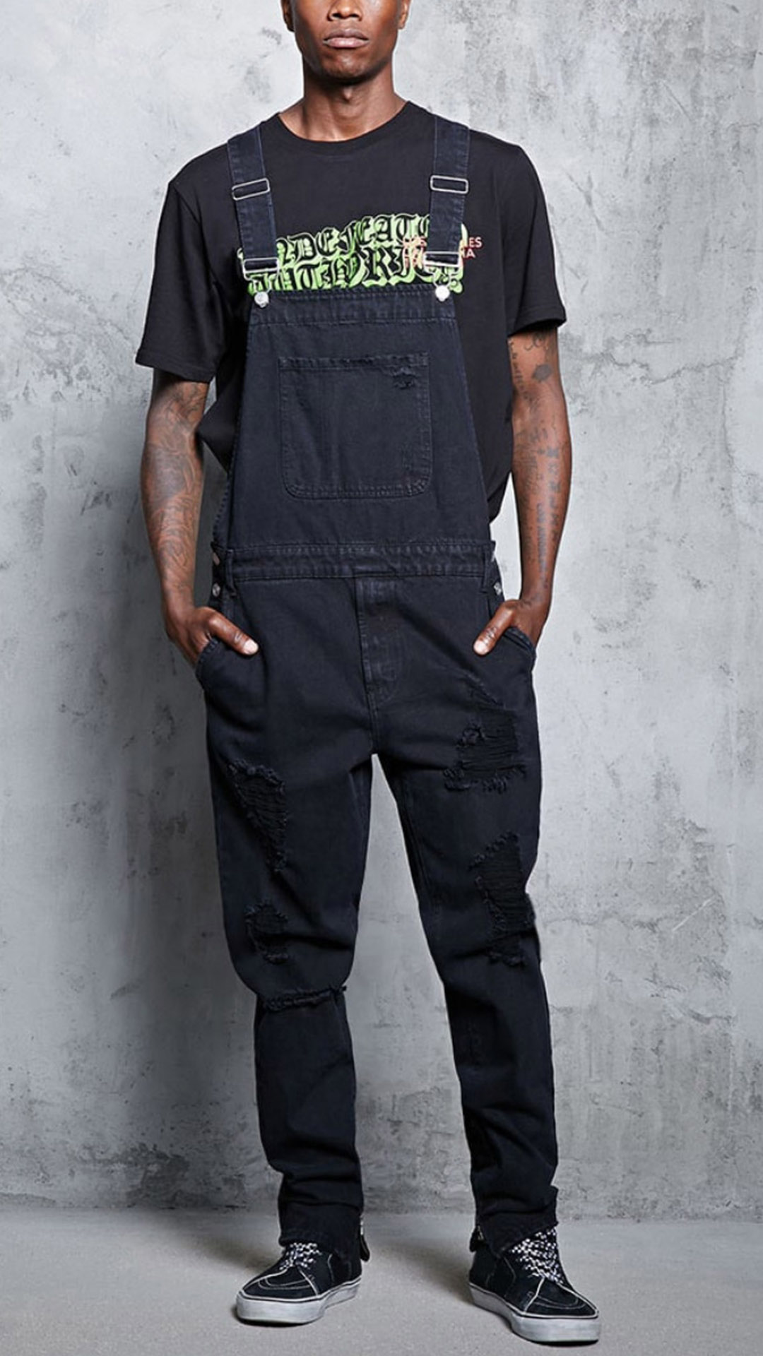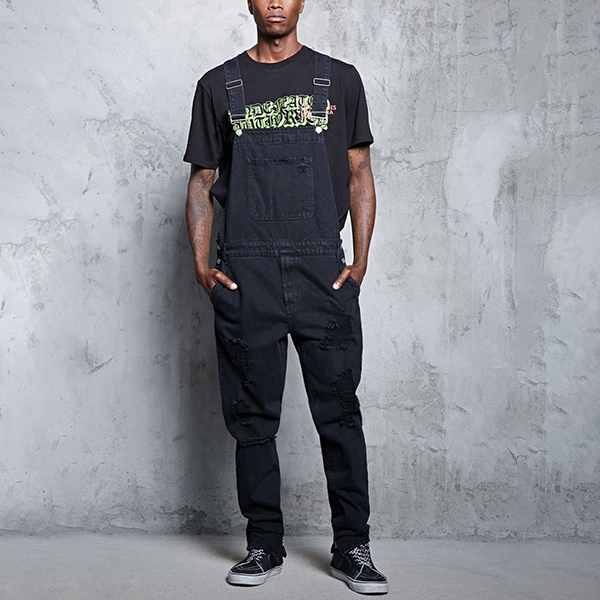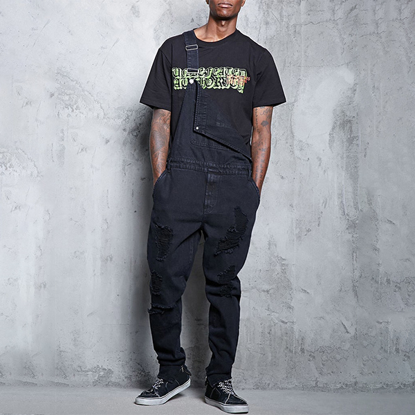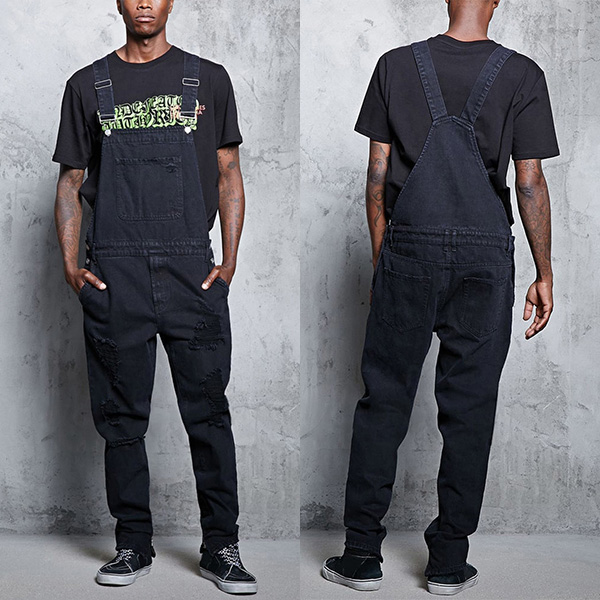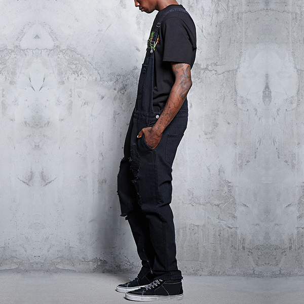 Fashion Distressed Patch Pockets Loose Denim Suspender Jumpsuit for Men
