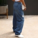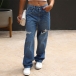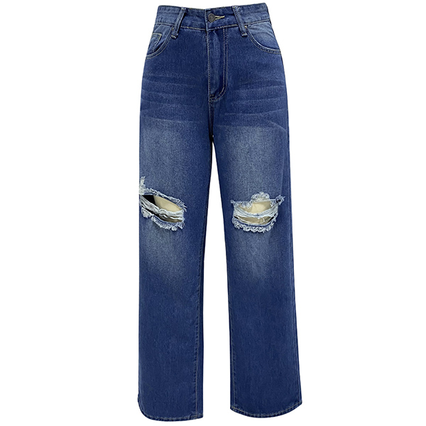 This is a trendy and versatile pants that exudes a cool and urban vibe. The straight-cut design offers a classic and flattering silhouette, perfect for a laid-back yet stylish look. While the distressed detailing adds a rugged and lived-in feel to the denim pants, creating a worn-in and edgy aesthetic. Pair the pants with a graphic tee, a leather jacket, and combat boots for a rebellious and edgy look.