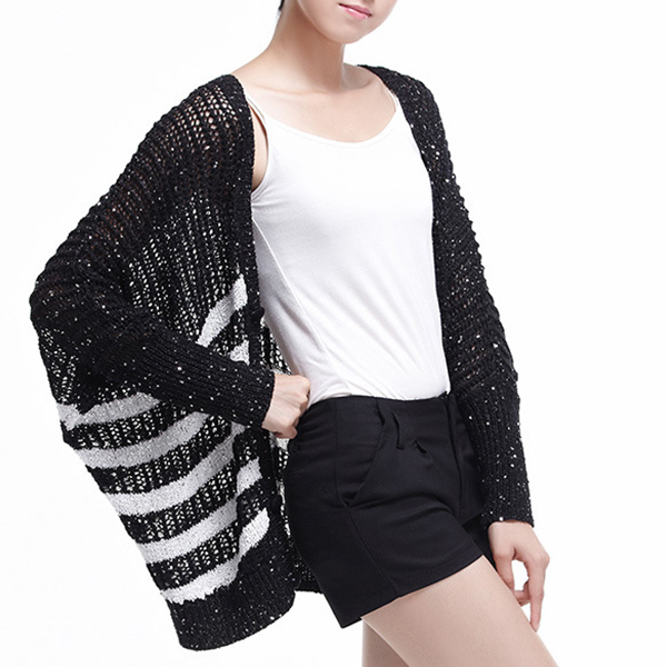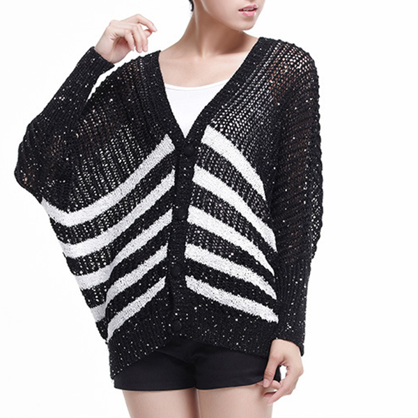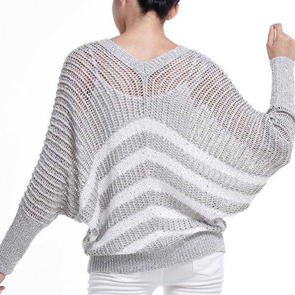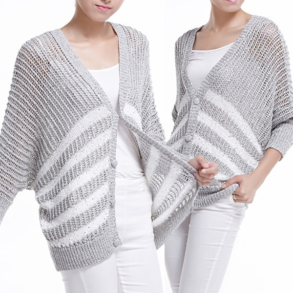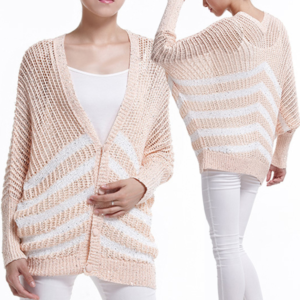 Contrast color striped style,designed with dolman sleeve,v-neck and a loose silhouette,this wonderful piece