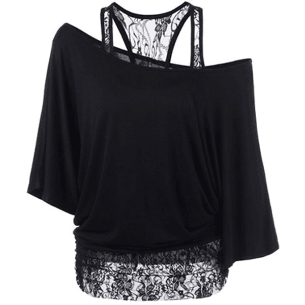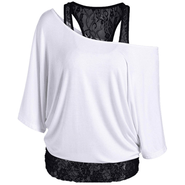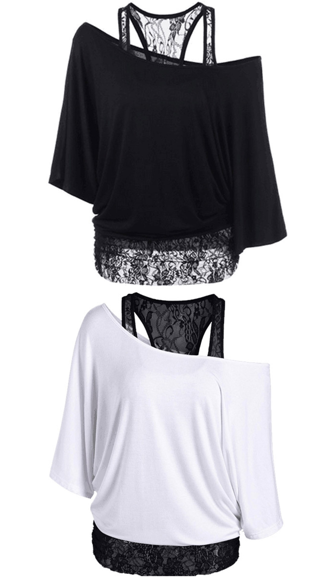 Wanna try a different style t-shirt? Then might we suggest you this piece. Mock two-piece style design makes it look so distinctive and attractive. Moreover,the dolman sleeve and lace spliced details will make it full of style and charm. Your style? Then invite it to your wardrobe!