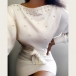 Fashion Dolman Sleeve Round Neck Slim Fit Beaded Dress