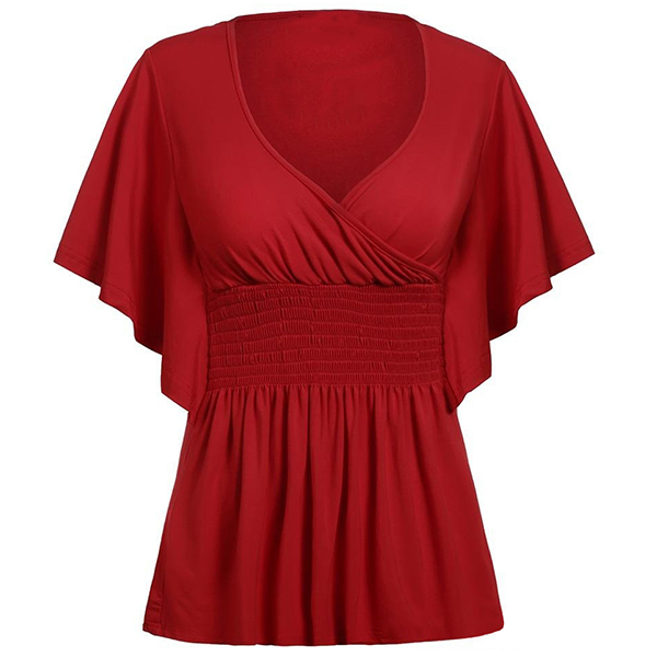 Wanna try a different style t-shirt? Then you can make your eyes focused on this piece. It boasts a solid color,the dolman sleeve and v-neck design make this piece look so sassy,flirty and distinctive. And the elastic waist design can help showcase your waistline. Your perfect choice in these summer days.