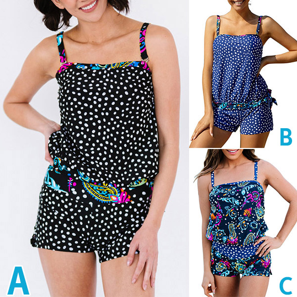 Fashion Dot Printed Floral Printed Tankini