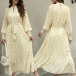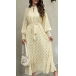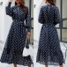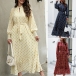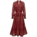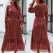 Fashion Dot Printed Mock Neck Long Sleeve Self-tie Midi-dress