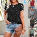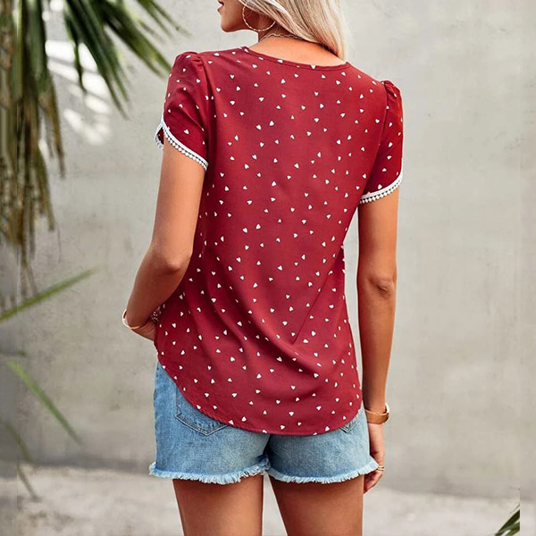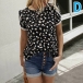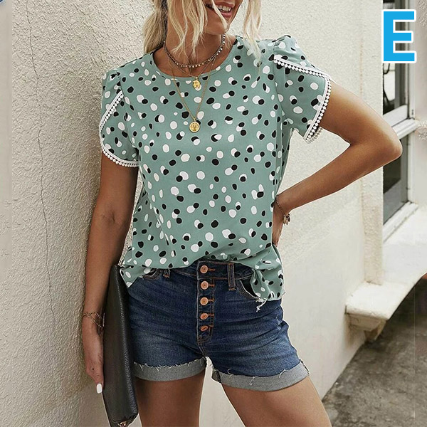 Fashion Dot Printed Short Sleeve Lace Spliced Shirt