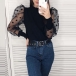 Only need one glance,you would be attracted by this chic and stylish top. The dots gauze spliced puff sleeve design makes this piece look so sexy and distinctive,while the fit silhouette design can showcase your perfect body-line. No matter matching with a shorts,skirt or jeans,you can look charming and fashionable enough!